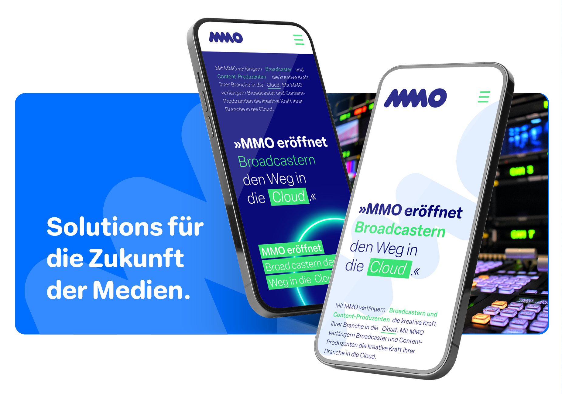 Die Essenz dieser Stärken prägt das neue MMO-Markendesign: clean und schnörkellos, kraftvoll und selbstbewusst. Von der Markenanalyse bis zum finalen Designhandbuch stringent entlang eines Kerngedankens entwickelt: Mit MMO setzen sich Broadcaster an die Spitze des digitalen Medienwandels.